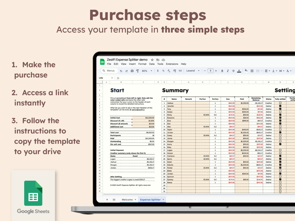 ***IMPORTANT*** Please use the email address that you intend to use Google Sheets with during checkout because access to the template will only be granted to that address ONLY!