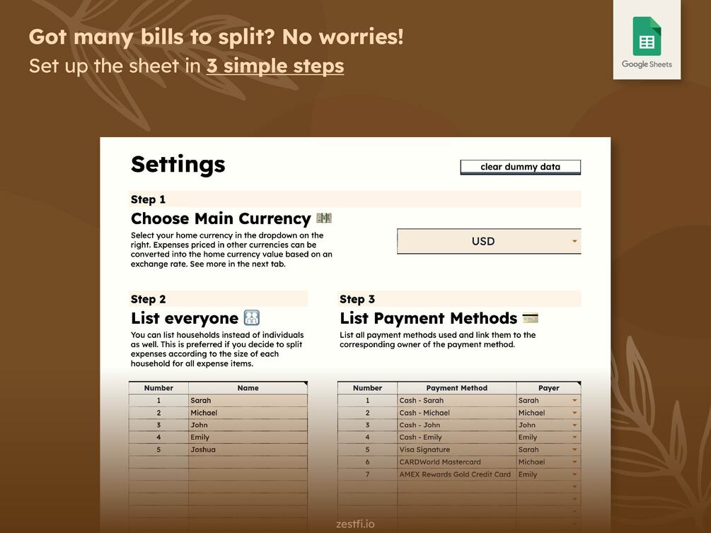 - The sheet calculates the exact amount who owes who so you don't have to!