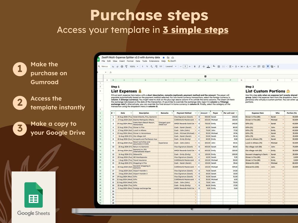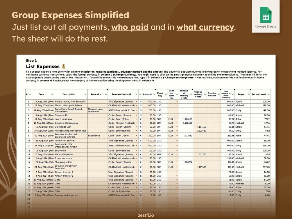 - The sheet calculates the exact amount who owes who so you don't have to!